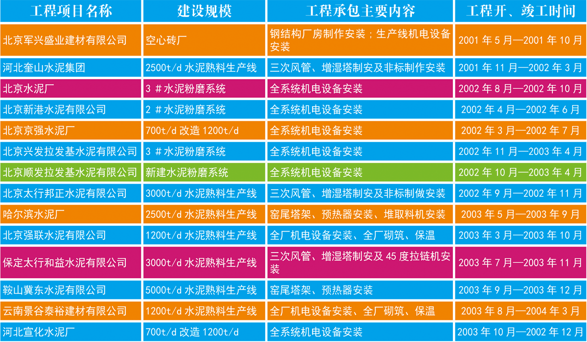 新建項目:全線機電設備安裝和調(diào)試 包括大型管磨、立磨、減速機安裝調(diào)試,預熱器、回轉(zhuǎn)窯、能冷機安裝調(diào)試